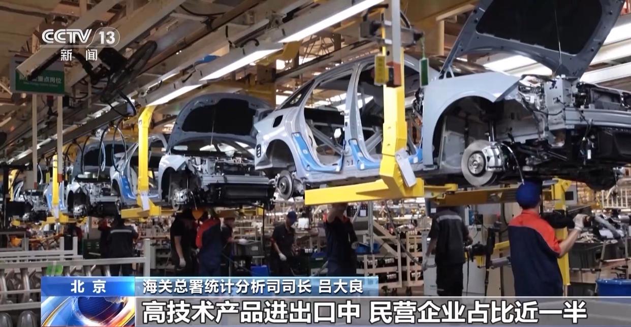 海关总署统计分析司司长 吕大良:今年前8个月,我国进出口规模前500位的企业中,民营企业占据了219家,较去年同期增加20家;高技术产品进出口中,民营企业占比近一半。我国民营企业创新活力不断增强,国际竞争力持续提升。